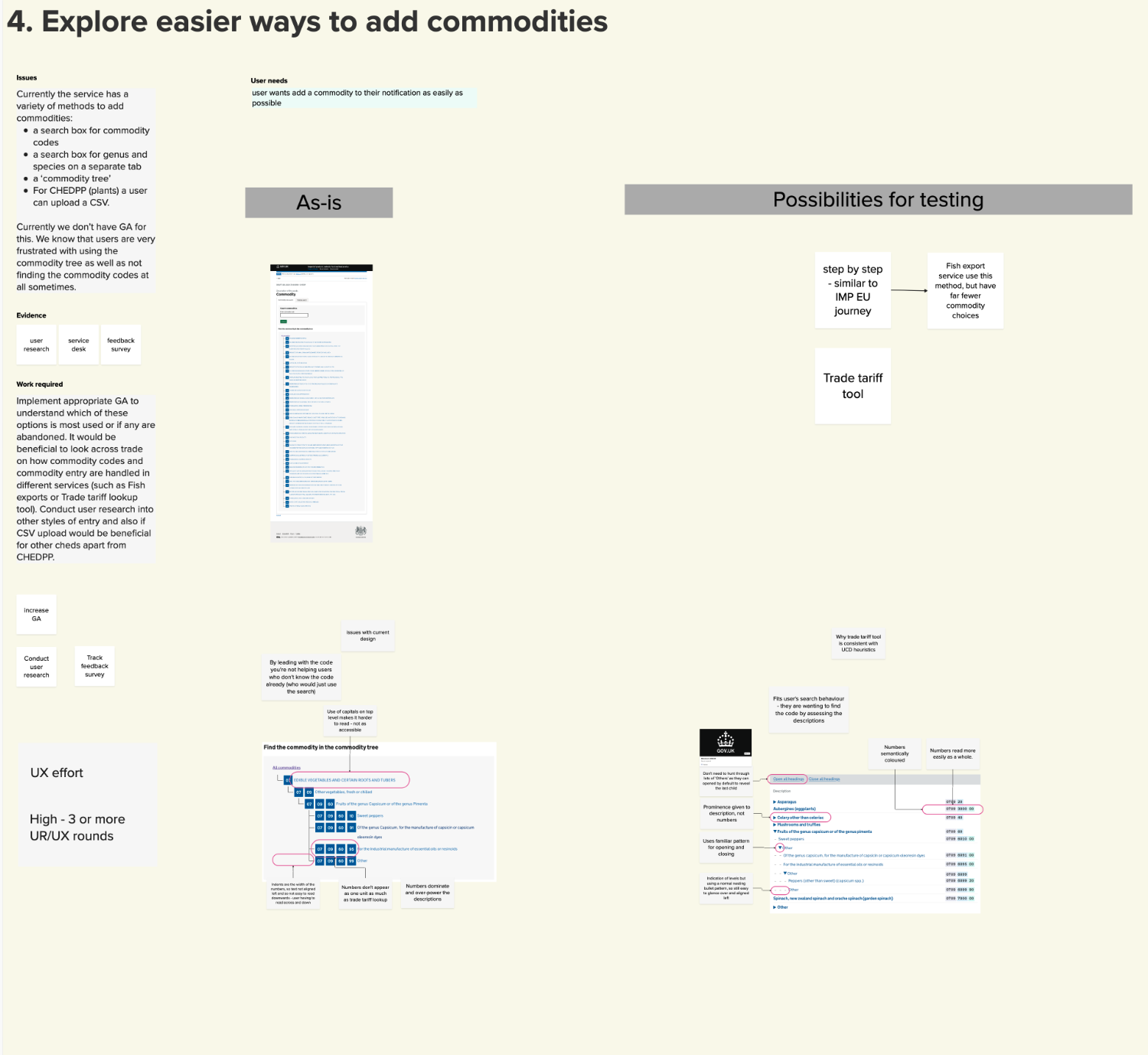 Redesigned the CHED-A live animal import journey, reducing unnecessary steps and simplifying complex interactions such as commodity code selection